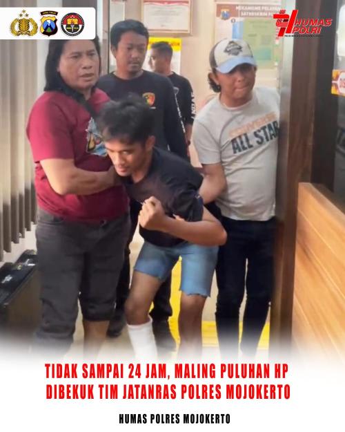 Tidak sampai 24 jam, Maling Puluhan HP Diringkus Tim Jatanras Polres Mojokerto.
