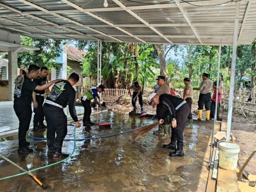 Polres Situbondo Bersihkan Fasum Terdampak Banjir Bandang di Desa Kalianget