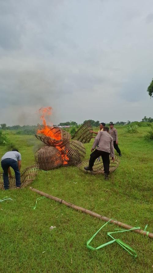 Polres Mojokerto Bongkar dan Bakar tempat Judi Sabung Ayam di Kutorejo