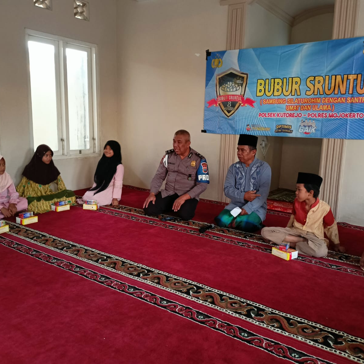 Kegiatan Bubur sruntul Personil Polsek Kutorejo, dengan masyarakat Kutorejo di Musholla Al Jannah Ds. Kutorejo Kec. Kutorejo Kab. Mojokerto