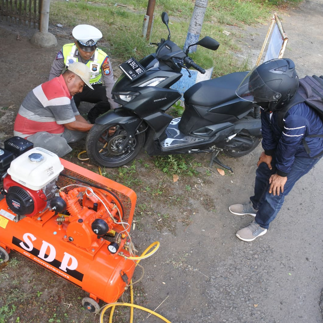 Polres Situbondo Layani Tambal Ban dan BBM Gratis Khusus Pemudik