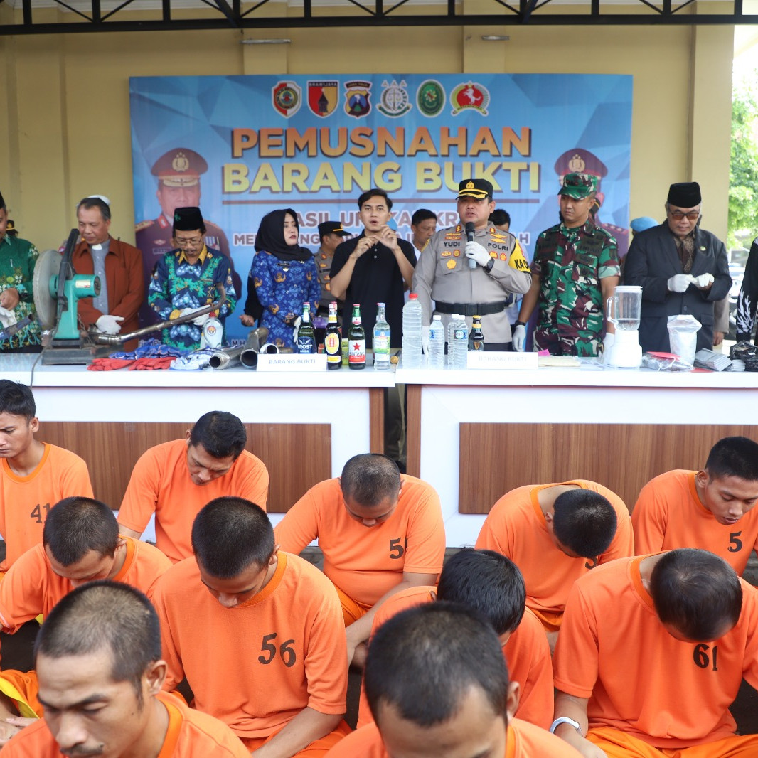 Jelang Hari Raya Idul Fitri 1444 H, Polres Mojokerto Musnahkan Barang Bukti Hasil Operasi KRYD
