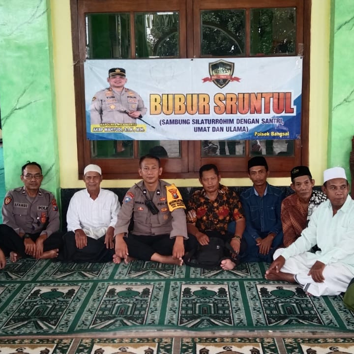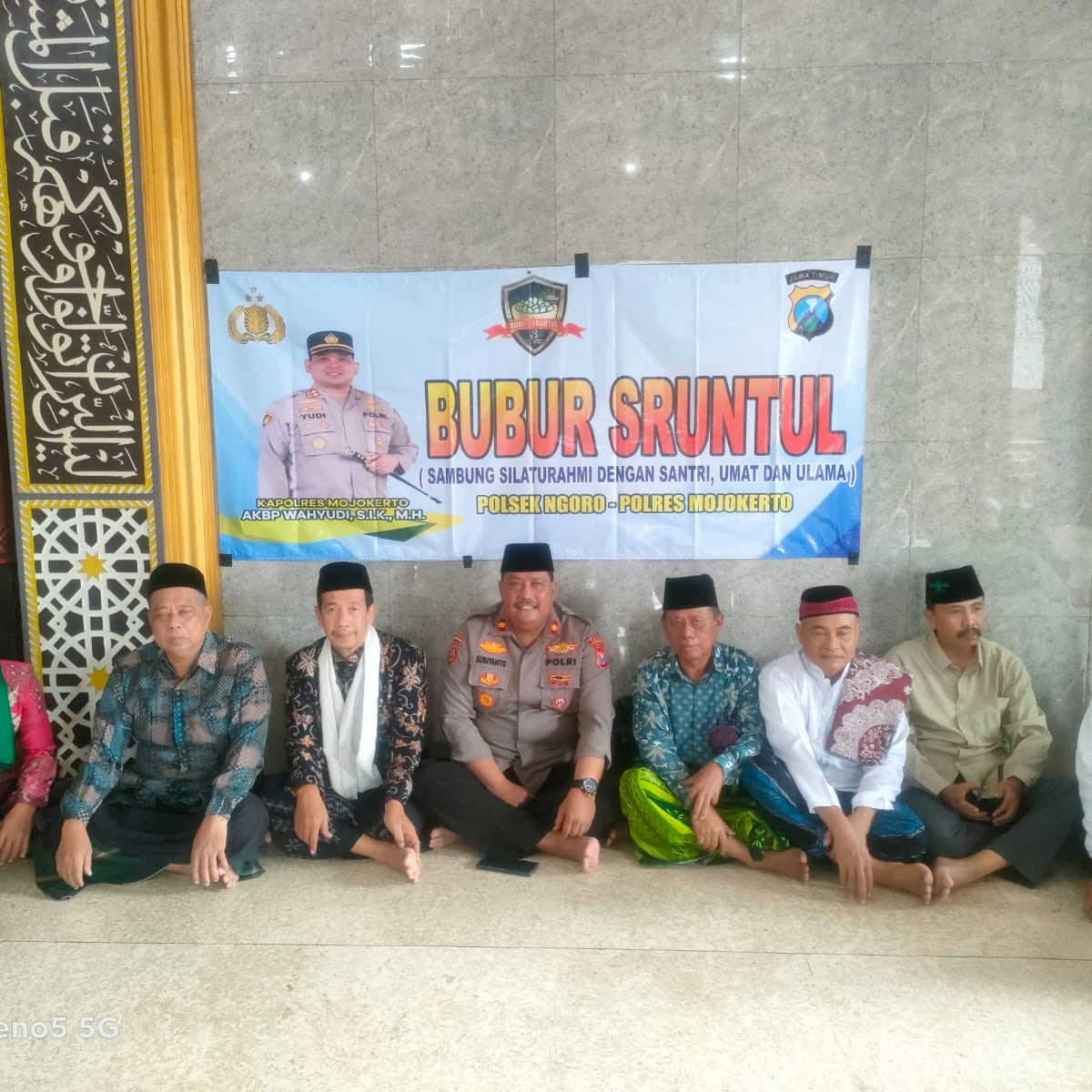 KEGIATAN JUM'AT CURHAT DAN BUBUR SRUNTUL BERSAMA ANGGOTA POLSEK MOJOSARI, POLRES MOJOKERTO, POLDA JAWA TIMUR DI MASJID AL FATAH DESA SEDURI KEC MOJOSARI.