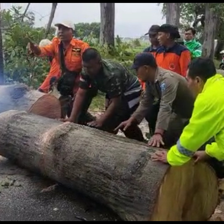 Gercep, Polisi Bersama TNI dan BPBD Evakuasi Pohon Tumbang, Akses Jalan Kembali Lancar