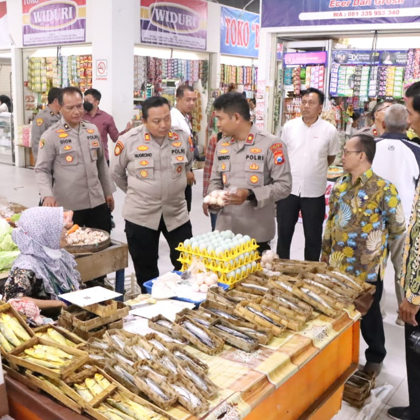 Polres Ngawi Bersama Disperindag Cek Ketersediaan Bahan Pangan di Pasar Tradisional