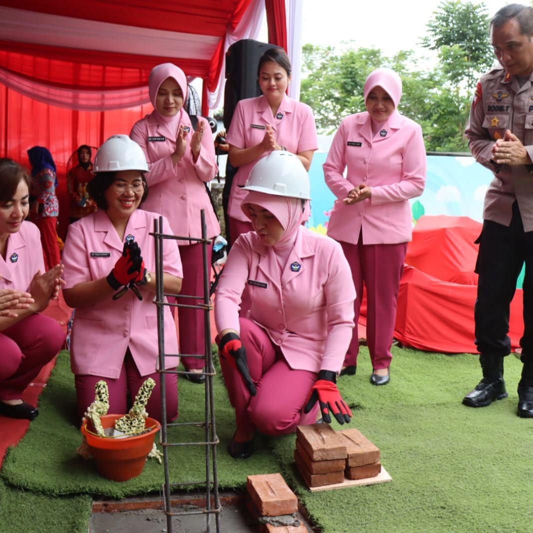 Ketua Pengurus YKB Daerah Jatim Letakan Batu Pertama Pembangunan TK Kemala Bhayangkari 66