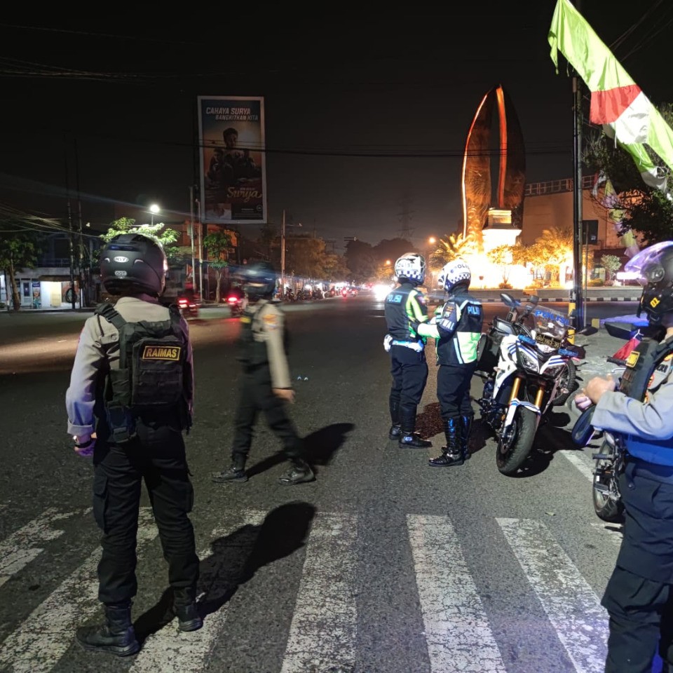Antisipasi Tindak Kriminal dan Cegah Balap Liar Puluhan Personel Polres Gresik Patroli Skala Besar