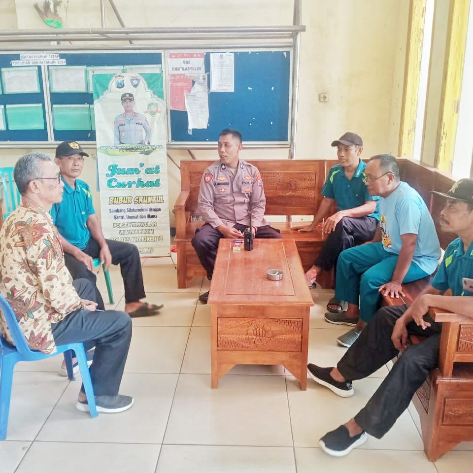 Polisi Trowulan Ajak Tokoh Masyarakat Desa Pakis Jaga Kamtibmas dan Tertib Lalu Lintas dalam Giat Jumat Curhat