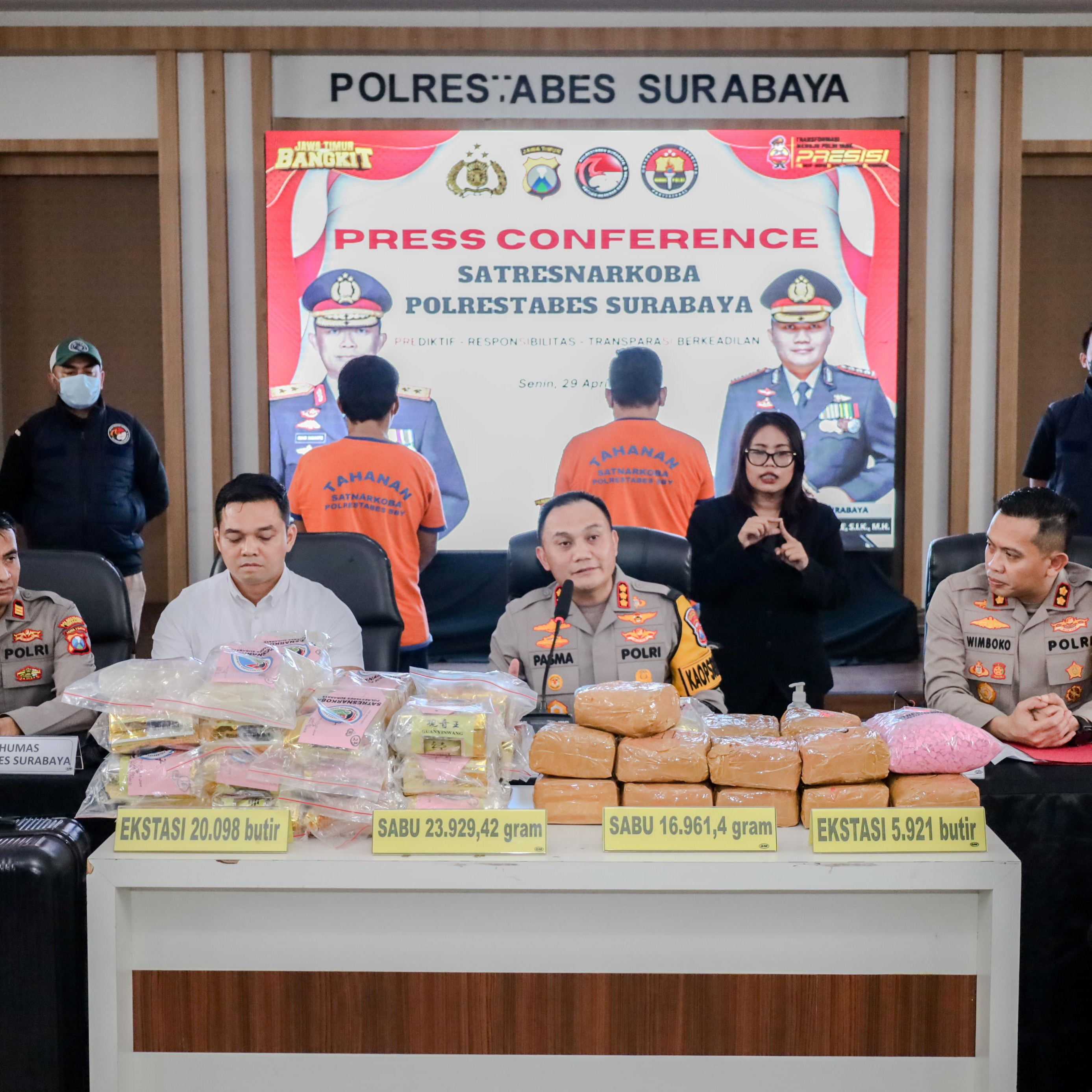 Polrestabes Surabaya Berhasil Amankan Sindikat Sabu Jawa Sumatera Sita 40,8 kg Sabu