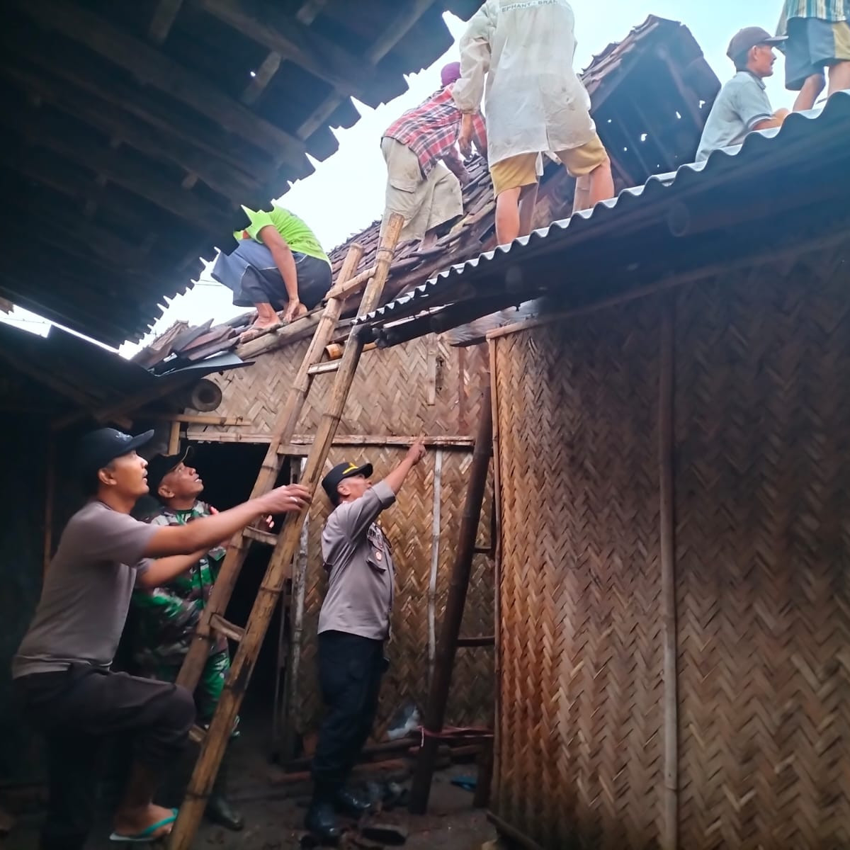 Sinergitas, Polisi bersama TNI dan Warga Tangani Dampak Puting Beliung di Bondowoso
