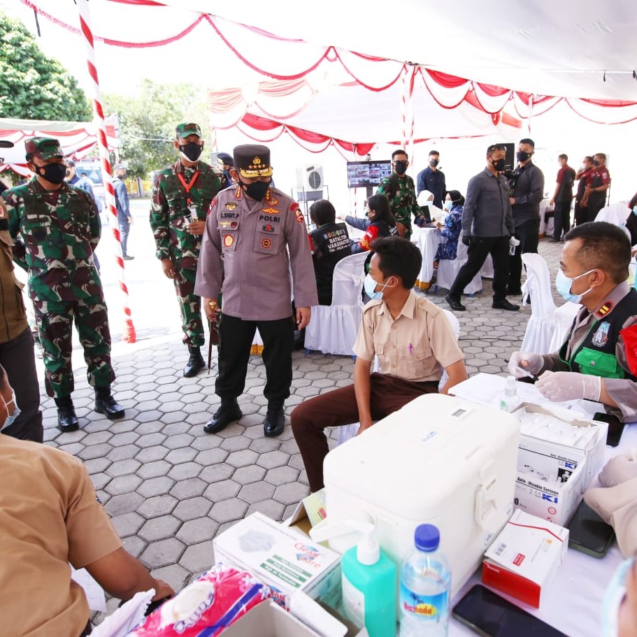 Pengamanan Vaksinasi, Kanit Binmas Polsek Mojosari sekaligus berikan Himbauan Kamtibmas