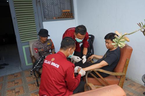 Kehadiran tim kesehatan Brimob Polda Jatim di lokasi mendapat sambutan positif dari warga sekitar.