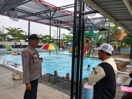 Selain melakukan pengawasan umum, anggota patroli juga memberikan imbauan kamtibmas khusus di area kolam renang. Petugas mengingatkan para orang tua agar selalu waspada dan mendampingi anak-anak mereka saat berenang serta selalu mengingatkan agar selalu berhati-hati tentang barang bawaan guna menghindari insiden yang tidak diinginkan. Pendekatan persuasif ini dilakukan untuk menumbuhkan kesadaran kolektif akan pentingnya keselamatan diri di tempat wisata, sehingga momen liburan tetap berjalan menyenangkan.